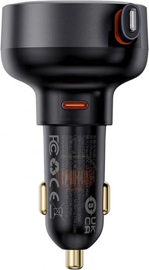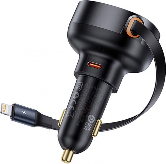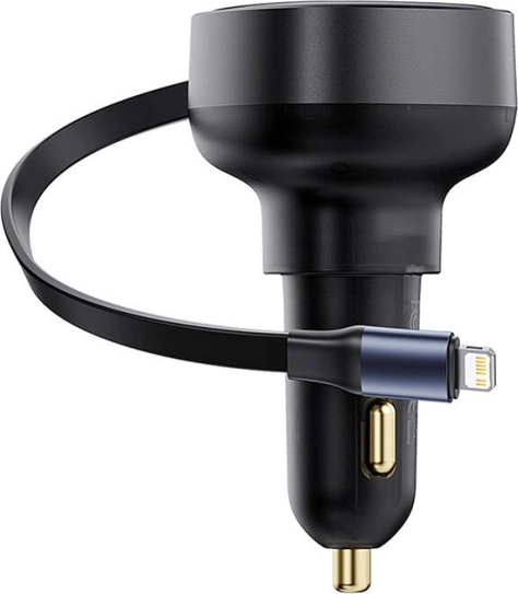 Das Baseus Enjoyment Pro KFZ-Ladegerät ist für einfache Handhabung und Effizienz konzipiert. Durch das einziehbare Kabel von 70 cm Länge können Sie Geräte mit Lightning- und USB-C-Anschlüssen anschließen. Durch den zusätzlichen USB-A-Port können Sie bis zu drei Geräte gleichzeitig laden, was die Ladezeit verkürzt und Zeit spart.