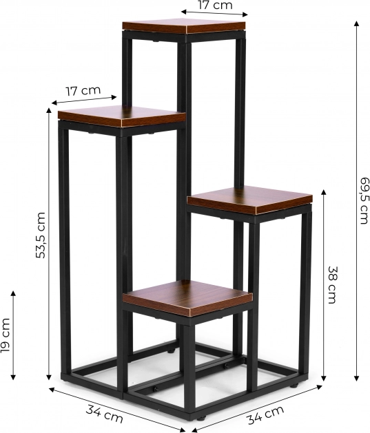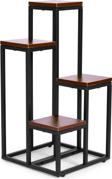 Pflanzenständer mit Regalen ModernHome 4 Ebenen, Metall und MDF, dunkle Walnuss