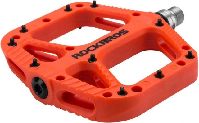 Orange Plattformpedale von Rockbros, wasser- und staubbeständig, bieten Komfort und Stabilität. Einfache Montage.