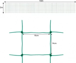Die robuste Konstruktion aus Polypropylen (PP) mit verstärkten Kreuzungen ist leicht, zugleich jedoch stabil und dehnungsbeständig. Das Netz kann problemlos an Pflöcken, Pfosten, Rahmen oder Pergolen befestigt und bei Bedarf durch Zuschnitt auf das gewünschte Maß angepasst werden.