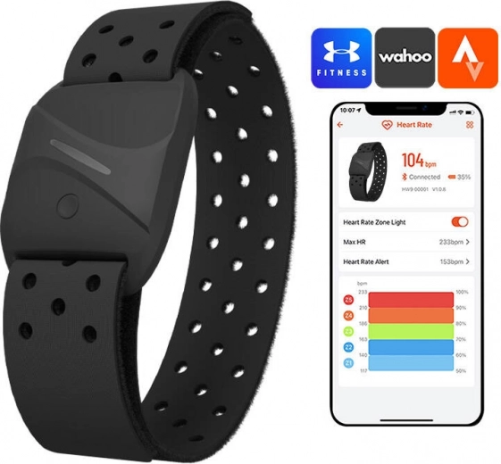 Leichter und präziser COOSPO Herzfrequenz-Monitor für den Oberarm mit optischer Messung, Bluetooth 5.0 und ANT+ Technologie, 5‑farbigem LED-HF-Zonenindikator, Vibrationsalarm bei Grenzüberschreitung und einer Laufzeit von bis zu 20 Stunden. Ideal für Laufen, Radfahren und Fitness, kompatibel mit beliebten Apps und Geräten.