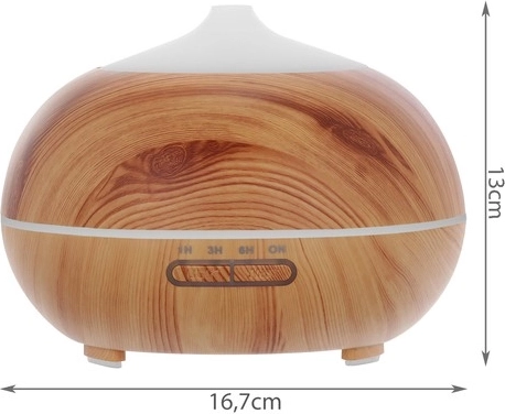Schaffen Sie zu Hause oder im Büro ein angenehmes Mikroklima. Dieser designstarke Diffusor in Holzoptik befeuchtet die Luft mit Ultraschalltechnologie, die Wasser in feinen Nebel verwandelt, und ermöglicht zugleich Aromatherapie mit Ihren Lieblingsdüften. Dank des 400 ml Volumens läuft er bis zu 14 Stunden pro Füllung und bleibt dabei außergewöhnlich leise (≤ 36 dB). Die integrierte Ionisierung hilft, die Luft frisch und angenehm zu halten.