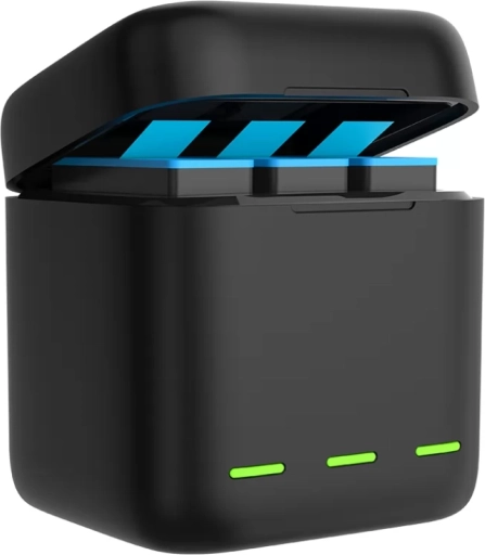 Die Telesin 3‑in‑1‑Ladebox ist die ideale Lösung für Creator, die ihre Actioncams stets einsatzbereit brauchen. Sie ermöglicht das gleichzeitige Laden von bis zu drei Akkus für GoPro HERO 12/11/10/9 und lässt sich dank USB‑C bequem an Powerbank, Ladegerät oder Laptop anschließen. Integrierte LEDs zeigen den Ladefortschritt klar an – von laufend über fast voll bis vollständig geladen.