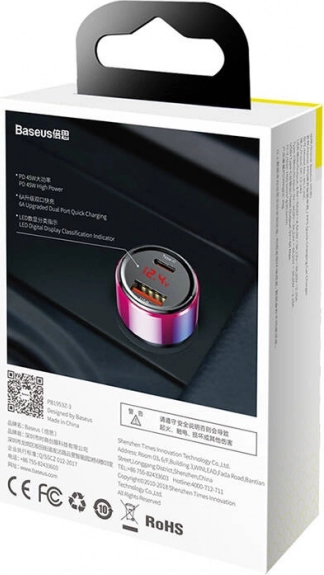 Das kompakte BASEUS Auto-Ladegerät mit einer Leistung von bis zu 45 W lädt Ihr Smartphone, Tablet oder Navigationsgerät schnell und sicher. Es bietet USB‑C und USB‑A-Anschlüsse zum gleichzeitigen Laden zweier Geräte, unterstützt QC 4.0, PD 3.0, PPS und weitere Protokolle sowie ein integriertes digitales Display zur Spannungsanzeige.