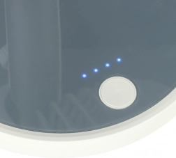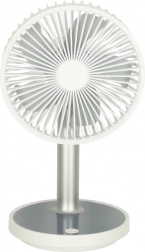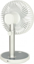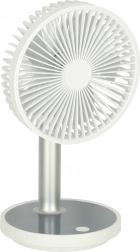 Genießen Sie angenehme Abkühlung an heißen Tagen. Dieser weiße Tischventilator kombiniert minimalistisches Design mit praktischen Funktionen: vier Luftstrommodi von sanfter Brise bis zu stärkerer Leistung, leiser Betrieb für Schlafzimmer und Büro sowie LED-Beleuchtung der Basis als dezentes Nachtlicht.