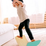 Das universelle Balancierbrett LULILO AJLO mit rutschhemmendem Filz in elegantem Türkis fördert die Entwicklung des Gleichgewichts, koordinative Fähigkeiten und die Grobmotorik. Robustes Buchen-Sperrholz, glatte Kanten und eine Filzunterseite sorgen für sicheres Schaukeln ohne Rutschen auf dem Boden. Ideal für Kinder ab 3 Jahren und Erwachsene – zum Trainieren, Spielen und Entspannen.