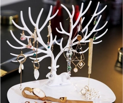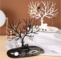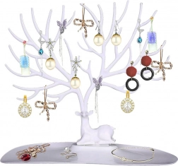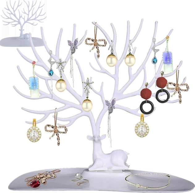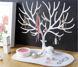 Schmuckständer in Baumform mit Reh – weißer Organizer für Ohrringe, Halsketten und Ringe