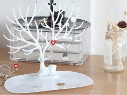 Der weiße Baum mit Reh schmückt sowohl die Schminkkommode als auch das Schaufenster. Ein praktischer Organizer, der zugleich großartig aussieht.
