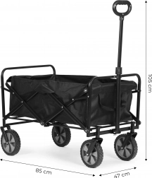 Suchen Sie einen zuverlässigen Wagen für den täglichen Einsatz? Dieser faltbare Transportwagen ist ideal für Garten, Strand, Park und Einkäufe. Der stabile Metallrahmen, die großzügige Ladefläche von 85 × 47 cm und die Tragfähigkeit von 70 kg bewältigen Werkzeug, Gepäck und sperrige Einkäufe.