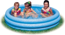 Der blaue aufblasbare Pool für Kinder der Marke Intex ist die perfekte Wahl für sommerliches Spielen im Garten. Dank einfacher Installation und leichtem Gewicht kann der Pool schnell einsatzbereit gemacht werden. Einfach auf einer stabilen Fläche ausbreiten, aufblasen und mit Wasser füllen. Starke dreiringige Wände bieten ausreichende Stabilität auch für die kleinsten Benutzer.