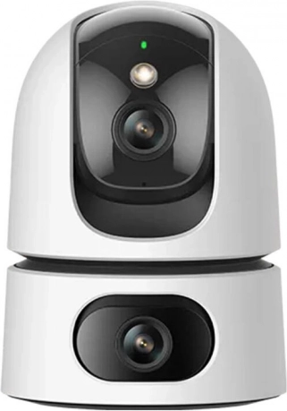 Die IMOU Ranger Dual 6MP ist eine intelligente PTZ‑Innenraum‑Wi‑Fi‑Kamera mit zwei 3‑MP‑Sensoren, die die gleichzeitige Überwachung zweier Bereiche ermöglichen – zum Beispiel Wohnzimmer und Terrassenzugang. Die Kombination aus PTZ‑Objektiv (Schwenken/Neigen) und Festobjektiv liefert eine nahtlose 360°‑Abdeckung ohne tote Winkel. Nachts sorgt sie dank schwarz‑weißer und farbiger Nachtsicht sowie eines intelligenten Modus, der bei Bewegung automatisch auf Farbe umschaltet, für ein klares Bild.