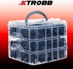 Alles ist übersichtlich in einer kompakten dreietagigen Box mit robusten Verschlüssen und Tragegriff verstaut. Getrennte Fächer sparen Zeit bei der Suche nach dem richtigen Typ. Für die schonende Demontage von Verkleidungen erhalten Sie 4 Kunststoffhebel und einen Metall-Clipentferner mit ergonomischem Griff, die das Risiko von Beschädigungen minimieren.