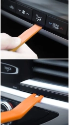 Das Set enthält 4 Kunststoffhebel und einen Metall-Clipentferner mit ergonomischem Griff für schnelles und sicheres Herausziehen der Clips ohne Kratzer.