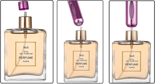 Nehmen Sie einfach den Sprühkopf des Parfümflakons ab und setzen Sie den Zerstäuber auf den Dorn des mechanischen Sprühers. Durch wiederholtes Pumpen füllen Sie schnell und sauber nach.