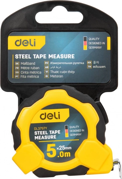 Stahl-Bandmaß DELI 5 m, 25 mm, gelb