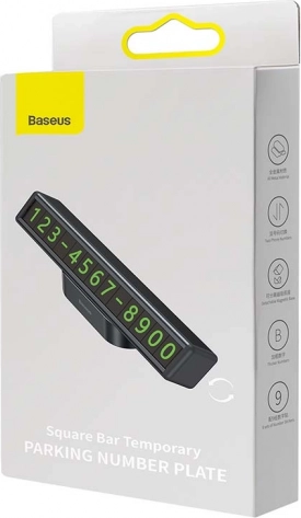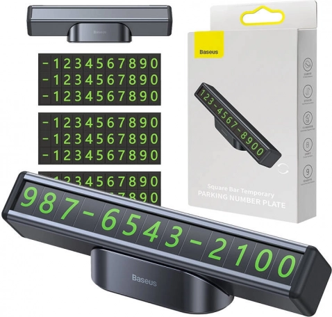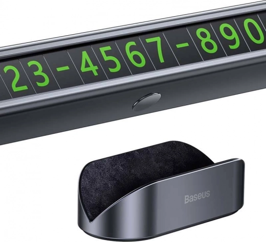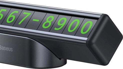 Elegante temporäre Parktafel von BASEUS mit fluoreszierenden grünen Zahlen sorgt dafür, dass man Sie bei Bedarf leicht kontaktieren kann. Sie bietet ein Wendedesign für 2 Telefonnummern, stabile Befestigung mit 3M‑Klebeband und eine magnetische Verbindung mit der Halterung. Kompakte Abmessungen beeinträchtigen die Sicht nicht und der verstellbare Winkel bis zu 45° gewährleistet hervorragende Lesbarkeit bei Tag und Nacht.