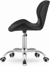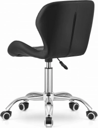 Dieser moderne Bürostuhl passt hervorragend ins Kinderzimmer, Studio, Büro oder den Empfangsbereich. Der Bezug aus strapazierfähigem Kunstleder mit dezentem Steppmuster wirkt elegant, lässt sich leicht reinigen und behält sein Aussehen lange. Das fünfarmige verchromte Fußkreuz mit gummierten Rollen sorgt für Stabilität sowie für bodenschonendes, leises Gleiten.