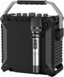 Der Lautsprecher wird mit einem drahtlosen Mikrofon geliefert, was ihn ideal für Karaoke oder Präsentationen macht. Bei Bedarf können auch kabelgebundene Mikrofone angeschlossen und Tonaufnahmen erstellt und gespeichert werden.