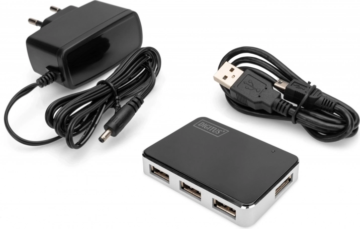 Der Hub wird mit einem USB‑A‑auf‑Mini‑Kabel geliefert, sodass Sie sofort loslegen können. Die aktive Konstruktion gewährleistet einen zuverlässigen Betrieb mehrerer Geräte gleichzeitig und eine stabile Stromversorgung. Das kompakte Gehäuse spart Platz und ist ideal für Reisen und Büro.
