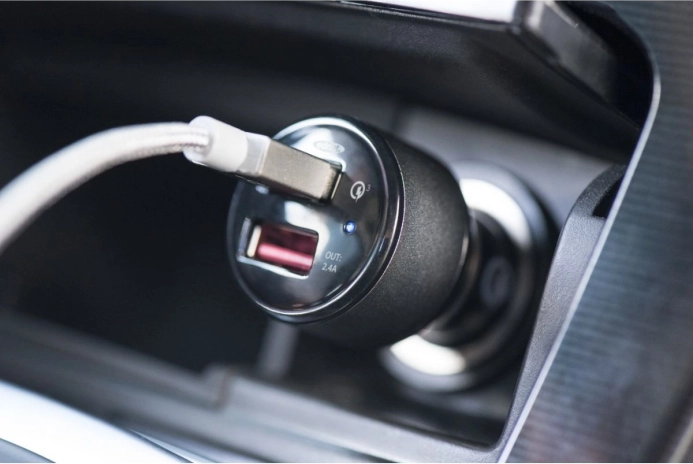 Genießen Sie blitzschnelles Laden unterwegs dank Qualcomm Quick Charge 3.0, das kompatible Geräte bis zu viermal schneller und im Vergleich zu QC 2.0 um bis zu 38 % schneller lädt. Der zweite Port mit Smart Charging (2,4 A) passt sich intelligent jedem Gerät an – für maximale Geschwindigkeit und Sicherheit.