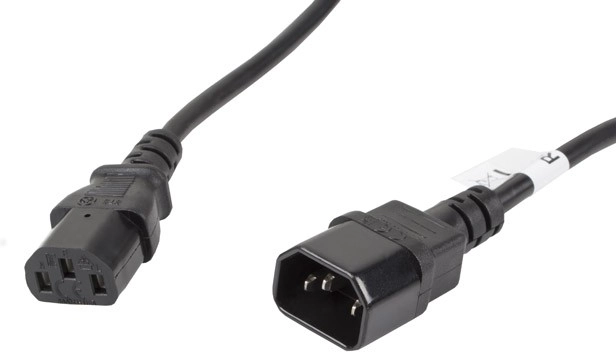 Standardkombination IEC 320 C13 (Kupplung) und IEC 320 C14 (Stecker) für die einfache Verbindung mit Stromquellen von PCs, Servern und USVs.