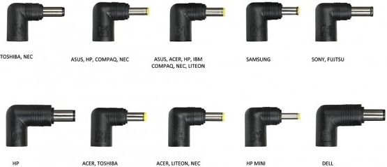 5,5×2,5 mm – 19 V (Acer, Asus, HP, Compaq, IBM, NEC, LiteOn)