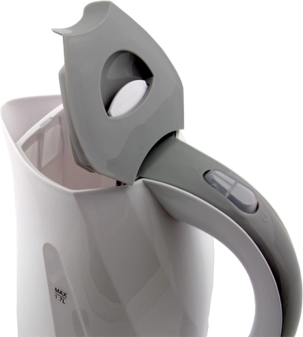 Dieser elegante Wasserkocher besteht aus hochwertigem, hitzebeständigem Kunststoff und passt dank der kompakten, ergonomischen Form in jede Küche. Die verdeckte Heizplatte aus Edelstahl sorgt für zuverlässiges Erhitzen und einfache Pflege, während das Volumen von 1,7 l den Bedarf der ganzen Familie abdeckt.
