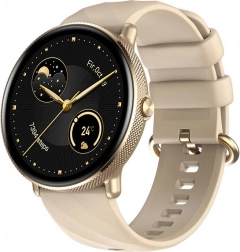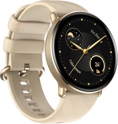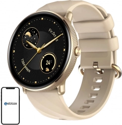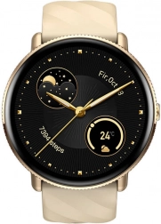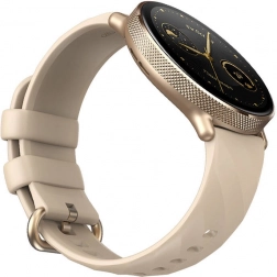 Das goldene Gehäuse und das beige Armband verleihen der Uhr ein modernes Aussehen und Stil. Die Touchscreen-Oberfläche macht die Navigation einfach.
