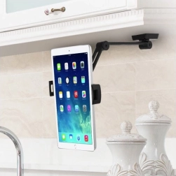 Ermöglicht die bequeme und sichere Befestigung eines Tablets an der Wand, unter der Arbeitsplatte oder auf einer anderen ebenen Fläche
