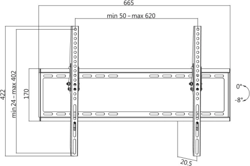 Universelle Wandhalterung für Fernseher mit einer Bildschirmdiagonale von 37–70", mit VESA-Unterstützung und einer maximalen Tragfähigkeit von 35 kg. Ideal für eine sichere und platzsparende TV-Montage an der Wand, mit sauberer Optik und zuverlässiger Konstruktion.
