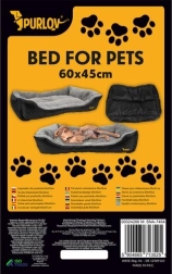 Das Purlov-Bett in der Größe 60 × 45 cm (außen 65 × 50 × 13 cm) ist für den bequemen Schlaf kleinerer und mittelgroßer Rassen konzipiert. Das weiche graue Innere und die robusten schwarzen Seitenwände sorgen für Komfort, Halt und lange Lebensdauer. Dank des niedrigen Einstiegs gelangen auch Welpen und ältere Tiere mühelos hinein.