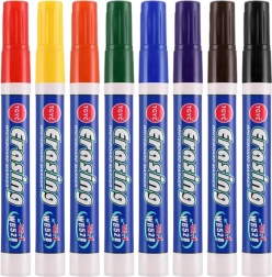 Das Set bietet acht kräftige Farben für übersichtliche Informationsorganisation, kreatives Markieren und optisch ansprechende Präsentationen. Robuste Spitzen verformen sich nicht und liefern einen sauberen Strich ohne Verwischen, während sich die Tinte mit einem trockenen Tuch oder Wischer leicht abwischen lässt.
