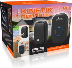 Keine Kabel und kein Batteriewechsel mehr. Die kinetische Klingel MT5701 nutzt die Energie des mechanischen Tastendrucks, die in Strom umgewandelt wird, um das Signal an die Steckdosenklingel zu senden. Die Installation ist schnell und sauber – den Taster an der Tür oder am Gartentor anbringen, den Empfänger in die Steckdose stecken.