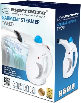 Der Handdampfbügler ESPERANZA Tweed ist ein praktischer Helfer zum schnellen Glätten von Falten und zum Auffrischen von Textilien – ganz ohne Bügelbrett. Aufheizen in 60 Sekunden, leistender Dampf 15 g/min und einfache Bedienung sorgen im Handumdrehen für saubere, gepflegte Kleidung und Heimtextilien.
