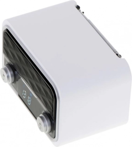 Die Geräte, die wir kaufen, ergänzen immer häufiger den Einrichtungsstil eines Raumes. Es handelt sich um ein Accessoire, das nicht nur funktional ist, sondern auch ästhetische Qualitäten besitzt. Was auf den ersten Blick auffällt, ist das originelle Design unseres Empfängers. Metallelemente in Kombination mit dem schwarzen Gehäuse schaffen ein stilvolles Radio, das seinen Platz sowohl im Homeoffice als auch im Schlafzimmer, in der Küche oder im Wohnzimmer findet. Es ist die perfekte Ergänzung zu einem modernen Stil und einem eleganten Interieurdesign. Die vorn angebrachten Drehknöpfe ermöglichen es, innerhalb von Sekunden den Lieblingssender zu wählen, die optimale Lautstärke einzustellen und zwischen bevorzugten Titeln zu wechseln. Das weiße LCD-Display ermöglicht ein schnelles Ablesen der Uhrzeit.