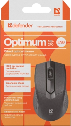 Verkabelte optische Maus DEFENDER Optimum MB-270 mit 1000 DPI und 3 Tasten. Zuverlässig, präzise und komfortabel für die tägliche Arbeit.