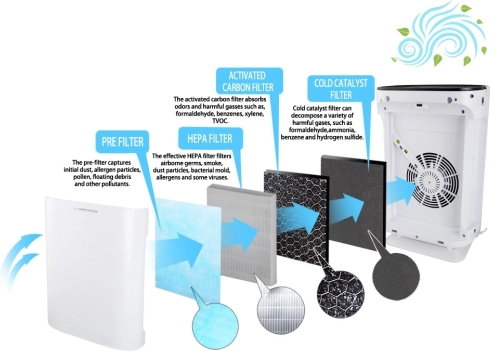 - Vorfilter, Aktivkohle, HEPA H11, kalter Katalysator