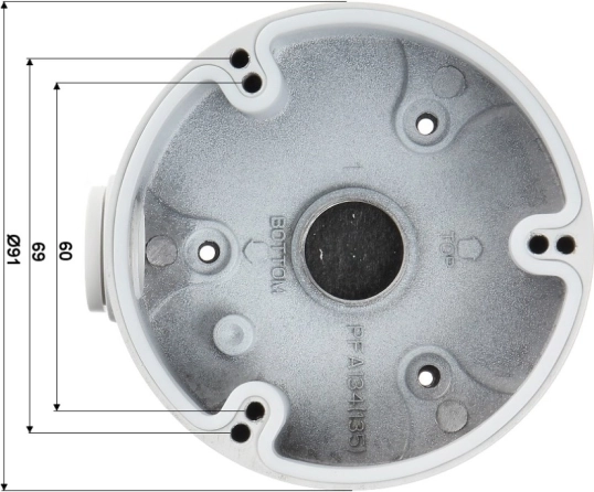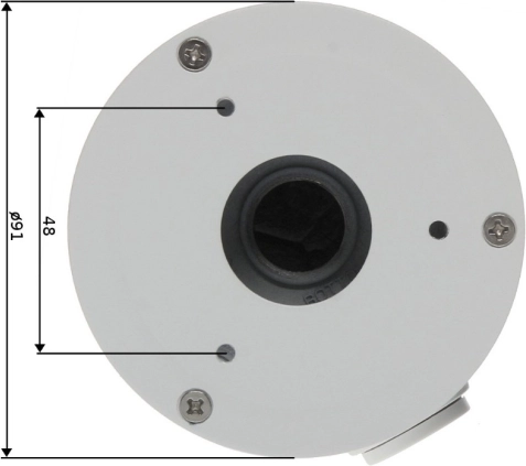 Deckenadapter PFA134 für Dome-Kameras mit verdeckter Kabelführung, Aluminiumkonstruktion, Lochabstand 48 mm, Durchmesser 91 mm. Saubere und sichere Installation.