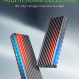 Das massive, gerippte Aluminiumgehäuse, der interne Kühlkörper und das Wärmeleitpad führen die Wärme des M.2‑SSD zuverlässig ab und minimieren Throttling bei langen Übertragungen.