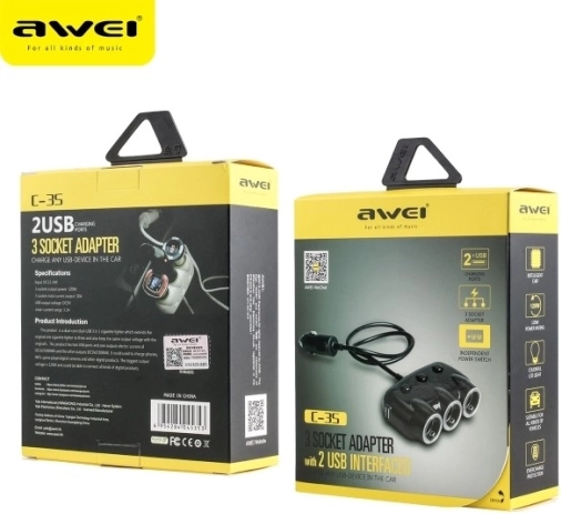 Der Awei C-3S ist ein kompakter Autoadapter, der Ihren 12–24V-Zigarettenanzünder in einen universellen Power-Hub verwandelt. Drei Steckdosen für den Zigarettenanzünder, ergänzt durch zwei USB-Ports, ermöglichen das Versorgen und Laden von bis zu fünf Geräten gleichzeitig – von Navigation und Dashcam bis hin zu Smartphone oder Tablet.