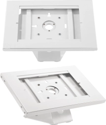 Eleganter und zuverlässiger Tablet-Ständer, geeignet sowohl für temporäre als auch permanente Nutzung, bietet eine geschlossene Metallkonstruktion für Sicherheit und Haltbarkeit. Dieser Ständer ermöglicht es, die Position des Tablets von horizontal auf vertikal zu ändern, was ideal ist, um den Inhalt Ihren Bedürfnissen anzupassen.