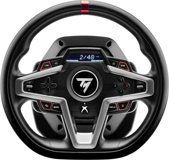 Erlebe realistisches Racing mit dem Thrustmaster T248 für Xbox Series X|S, Xbox One und PC. Es bietet ein interaktives Cockpit-Display, 3 Force-Feedback-Modi, einen leistungsstarken Hybrid Drive, 25 programmierbare Tasten sowie magnetische Schaltwippen und T3PM-Pedale für präzise und geschmeidige Kontrolle.