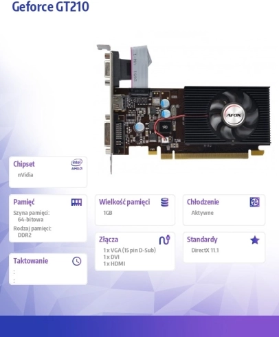 Grafikkarte - GeForce GT210 1GB DDR2 64Bit DVI HDMI VGA LP Lüfter V7