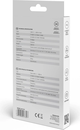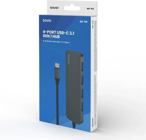 Der kompakte und elegante USB‑C‑Hub von Savio erweitert Ihr Notebook oder Ihren PC um 4 USB‑A‑Ports. Er bietet schnelle Datenübertragung bis zu 5 Gbit/s, treiberlose Plug & Play‑Installation, ein Gehäuse aus Aluminium und eine breite Kompatibilität mit Windows, macOS und Linux.