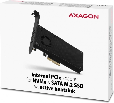 Interner PCIe‑x4‑Adapter für 1× M.2 NVMe M‑Key und 1× M.2 SATA B‑Key mit aktivem und passivem Kühlsystem AXAGON