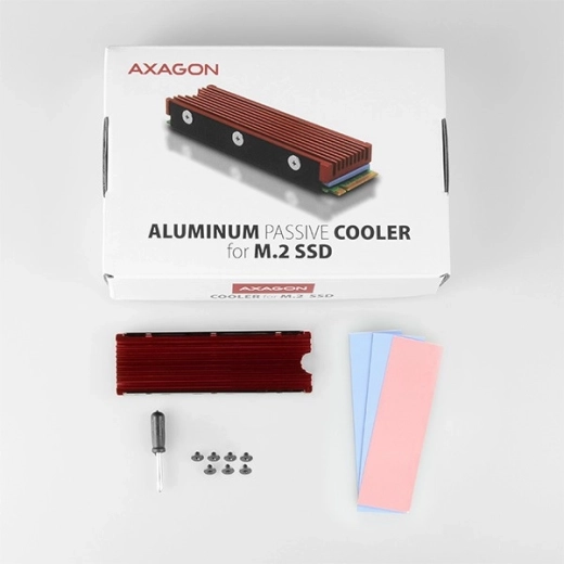 Der passive AXAGON Kühler für SSDs im Format M.2 2280 senkt dank Aluminiumrippen die Temperaturen effektiv um bis zu 25 °C. Universelle Lösung für einseitige und beidseitige Laufwerke, kompatibel mit SATA und NVMe. Im Lieferumfang sind drei Silikon-Wärmeleitpads für perfekten Kontakt und einfache Montage enthalten.