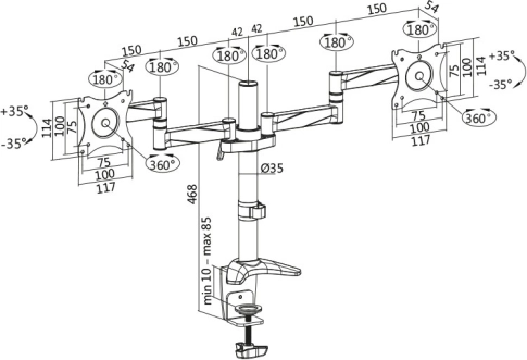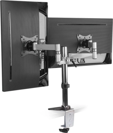 Die Arme lassen sich in Höhe, Neigung und Drehung leicht einstellen, sodass Sie die Bildschirme schnell an Ihre Körpergröße und die aktuelle Aufgabe anpassen. Die robuste Tischklemme sorgt für Stabilität ohne Bohren in die Wand und spart zugleich Platz.