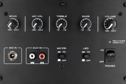 Auf dem Bedienfeld finden Sie separate Regler für Bass und Höhen sowie einen Equalizer mit den Modi Normal, Rock, Pop, Classic, Jazz und News. Die Funktion TWS (True Wireless Stereo) ermöglicht das Koppeln zweier MB06.2 für eine breitere Bühne und echten Stereo-Effekt. Karaoke mit dem mitgelieferten kabelgebundenen Mikrofon bringt jede Feier zum Leuchten, während LED-Lichter eine beeindruckende Club-Atmosphäre schaffen.
