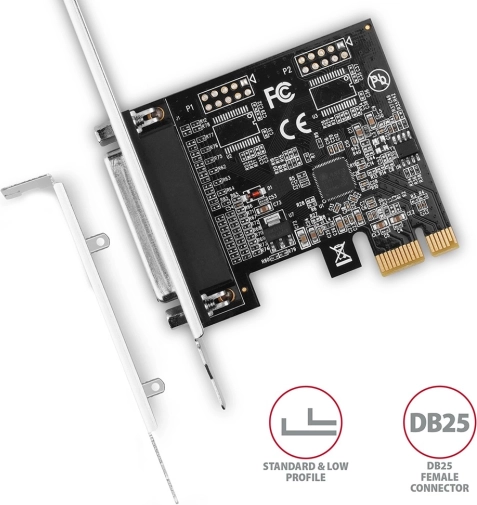 Erweitern Sie Ihren Desktop-PC um einen klassischen LPT‑Port mit der AXAGON-Karte mit ASIX-AX99100-Chipsatz. Sie bietet 1× parallelen IEEE‑1284‑Port (DB25), Kompatibilität zu SPP/BYTE/ECP, eine PCIe 2.0 x1-Schnittstelle und Plug-and-Play-Installation. Dank der mitgelieferten Low-Profile-Blende passt sie in Standard- und Low-Profile-Gehäuse.