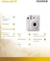 Die Fujifilm Instax Mini 12 ist der ideale Begleiter für Ausflüge, Feiern und Alltagsmomente. Dank des Sofortdrucks erhalten Sie physische Fotos in wenigen Sekunden – ganz ohne komplizierte Einstellungen. Das minimalistische Design und das geringe Gewicht machen sie zu einem stilvollen und praktischen Gerät für jede Tasche.